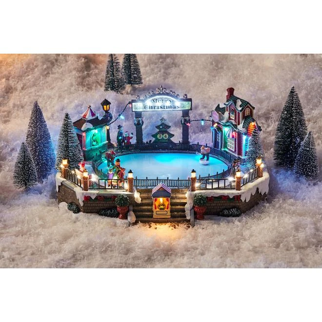 This Carole Towne lighted and animated scene from Holiday Living will bring a hint of nostalgia to your holiday decor. Made of resin, the musical decoration features children playing hockey. Indoor use only.