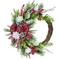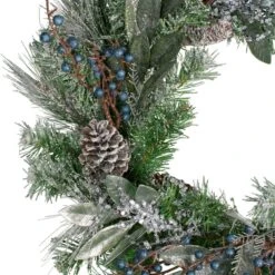 Holiday Living Indoor Battery-Operated Green Silver Artificial Christmas Wreath Warm White LED 30-in