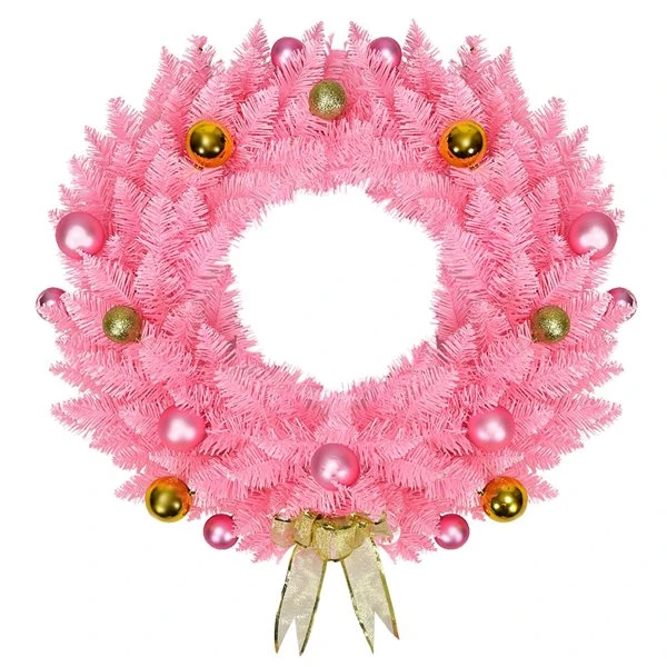 Costway 24-in Indoor/Outdoor Pink Ornament Artificial Christmas Wreath