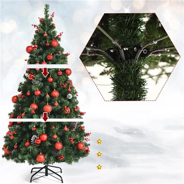 - Dense PVC branch tips form a full-bodied Christmas tree