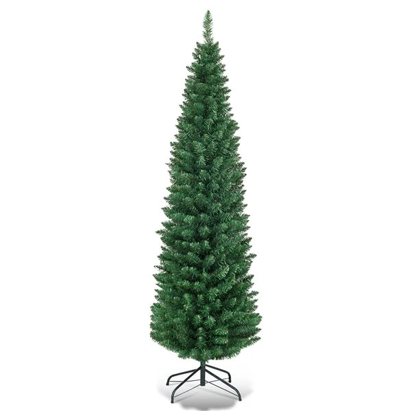 Costway 5-ft PVC Artificial Pencil Christmas Tree Slim With Stand Home Holiday Decor Green