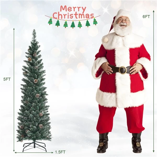 Costway 5-ft Unlit Slim Green Artificial Christmas Tree With Pine Cones