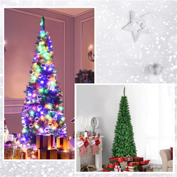 Costway 6.5-ft Pre-Lit Hinged Artificial Pencil Christmas Tree With 250 Multicolour Lights