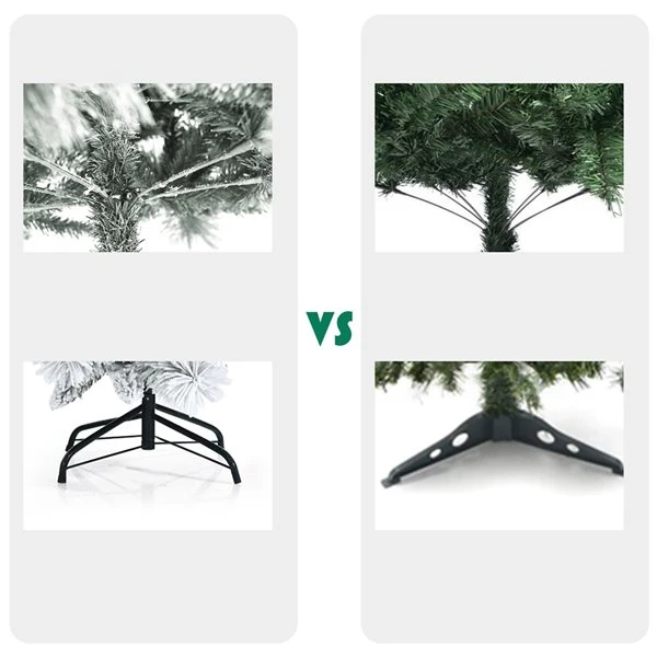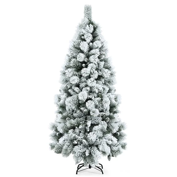 If you want bring home beautiful wintry scenes, our snow-flocked Christmas tree is an ideal choice. In order to create realistic appearance in the winter, this unlit Christmas tree adopts 2 different leaf shapes with snow-flocked design to create natural gradations of layered tree shape. Slim shape with plentiful leaves make the tree an eye-catching decoration in the corner. Premium PVC material and fine craftsmanship ensure realistic look and lasting durability.
