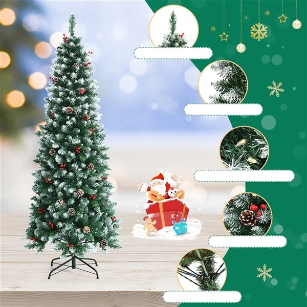 A delicate Christmas tree is always the most attractive part in Christmas. This classic pencil tree reaches up to 6-ft, to be the biggest holiday decor in your home. Trimmed with pine cones and red berry clusters, the lush and full Christmas tree highly restored the appearance of a real tree.