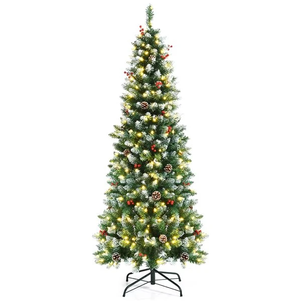 Costway 6-ft Pre-lit Slim Flocked Green Artificial Christmas Tree With 300 Warm White LED Lights