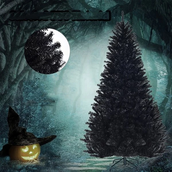 This Halloween Christmas tree is an ideal choice to imbue your home with a holiday atmosphere! This tree is tall, leafy and fluffy with 1258 branch tips, which will be a great decoration at Halloween. Branches are made of odourless PVC material, which is crack-resistant and waterproof. And the metal stand offers high stability and sturdiness to help the tree stay straight in the wind. You can use the Halloween Christmas tree whether indoor or outdoor. What’s more, the branches are connected to the trunk by hinges to set up effortlessly in a short time. With all-black appearance, it is an eye-catching addition at home, office, shop, etc.
