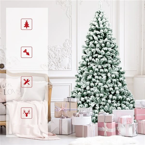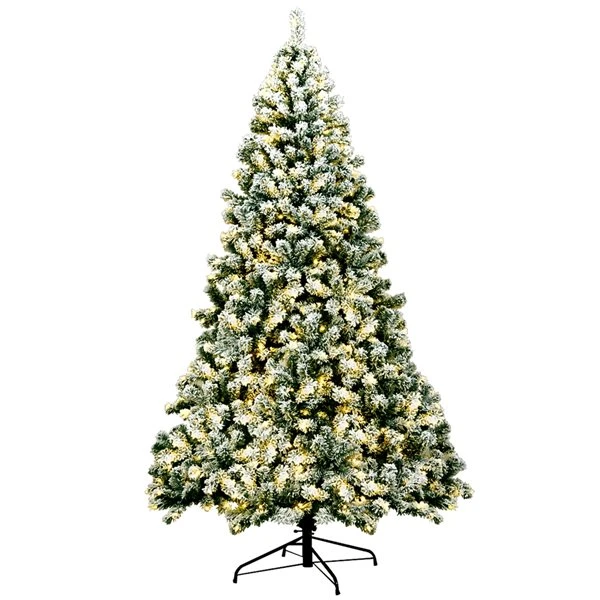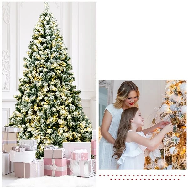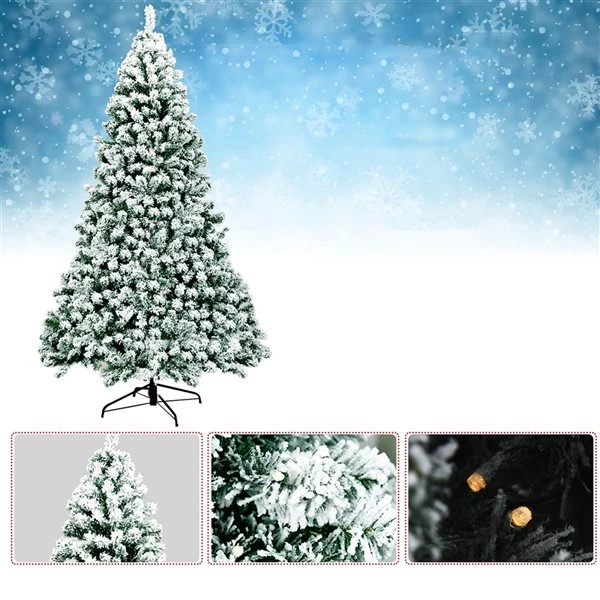Transform your living room into a unique winter wonderland with this pre-lit snow flocked Christmas tree. The tree, crafted with 1364 branch tips and snow flocked leaves, is leafy and elegant. It will give you the illusion of a full-bodied genuine tree. Made of high quality PVC material, these snow flocked leaves with exquisite craftsmanship will not fall off or fade easily, ensuring long-term use. 550 warm LED lights hanging on the branches will bring a festival glow to your home. Supported by sturdy metal stand, this artificial Christmas tree will keep standing upright for years to come. At the same time, the metal stand is foldable to facilitate storage. All hinged construction makes the artificial tree easy to set up and fluff. In addition, this Xmas tree can be divided into 4 sections and placed in a storage bag for future reuse easily. With its eye-catching appearance, this snow flocked Christmas tree will definitely be a glamorous decoration for any place.