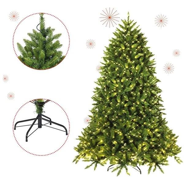 This pre-lit Christmas tree offers a truly luxurious look and style. The 7.5-ft artificial fir tree has 1968 branches and is full of appearance. PVC material is non-flammable, non-allergic and reliable to make it the perfect substitute for the real tree. We provide 700 LED lights with 8 flash modes to suit your holiday spirit. And 1968 branch tips provide plenty of space for hanging ornaments and other Christmas tree decorations. The hinged structure and foldable base allow you to easily assemble the tree or unpack it and effortlessly store it next year. It is ideal for decorating homes, offices, school, etc.