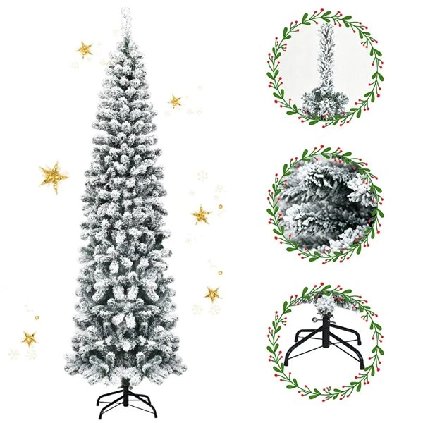 Costway 7.5-ft Unlit Hinged Snow Flocked Artificial Pencil Christmas Tree With 641 Tips