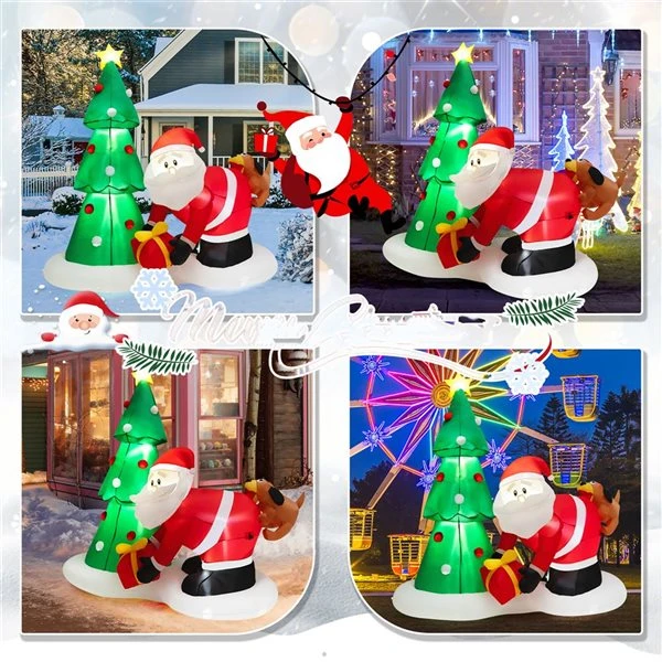 Costway 7-ft H Lighted Inflatable Christmas Tree With Santa Claus Chased By Dog