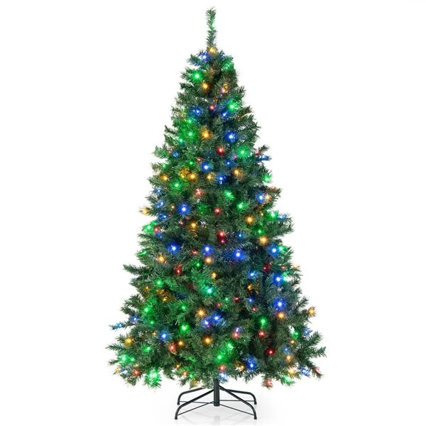 Bring a warm and cheerful holiday atmosphere to your home! This 7-ft pre-lit artificial Christmas tree allows you to enjoy a joyful and lucky vibe with your family or friends, adding charm to your Xmas Holiday. Designed with 350 multicolour LED lights, the pre-lit Christmas tree provides a shiny lighting show and enchants your family on Christmas Night, sharing happiness and blessing sincere wishes. More than that, it adopts 1006 dense branch tips to form a lush and full-bodied appearance, showing natural vividness. And the needles are crafted with high-quality PVC material that is non-flammable, crack-resistant, non-odours, non-allergic, and durable , ensuring long service life. The cross-shaped metal base provides great support and ensures balance, keeping the tree upright and preventing breakage. In addition, the tree adopts convenient hinged structures and upgraded process, which eliminates the need to manually fluff the tree, saving you time and energy on the installation.
