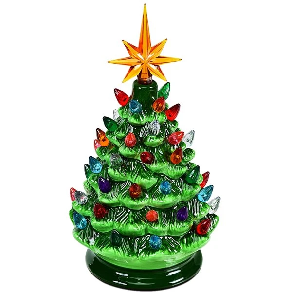Costway 9.5-in Pre-Lit Hand-Painted Ceramic Tabletop Green Christmas Tree