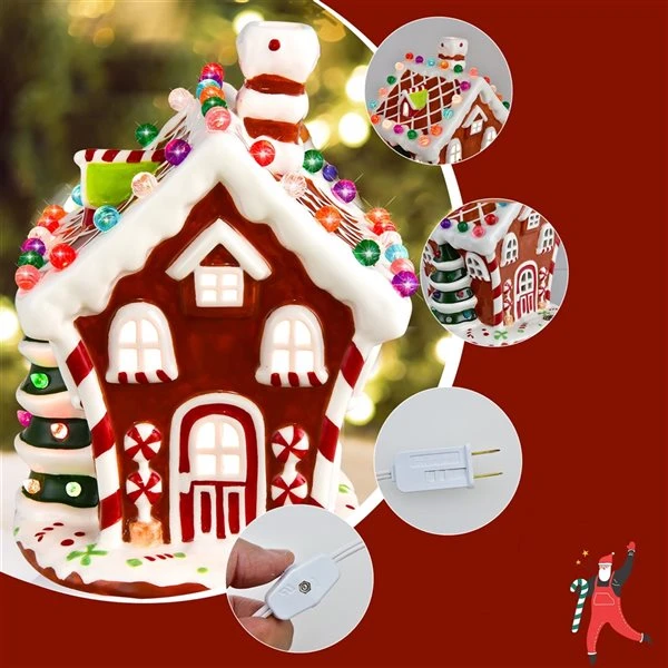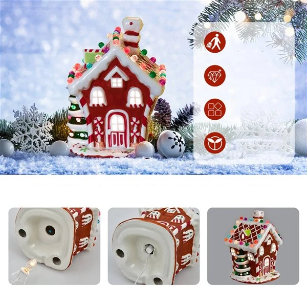 This tabletop Christmas decoration combines stunning colours and exquisite hand-painted craftsmanship to bring a festive atmosphere to any space. Crafted of durable ceramic material, this pre-lit house is fireproof and wear resistant, offering you long-term quality service. Equipped with one bulb and decorated with 44 colourful decorative beads, there is no doubt that it will be a wonderful scene in any room. An easy installation is required, just insert the small bulb into the base and turn on the switch to make this Christmas house light up your room!