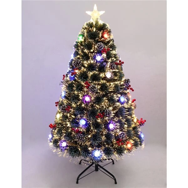 Hi-Line Gift Ltd. 5.9-ft Pre-Lit Full Green Artificial Christmas Tree With 40 Constant Multicolour LED Lights And Pine Cones