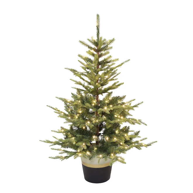 - 4-ft (121.92 cm) pre-lit artificial potted PE/PVC Christmas tree