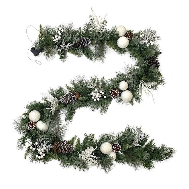Holiday Living Indoor Pre-Lit White Ball Ornament And Pine Cone Christmas Garland Warm White LED 9-ft