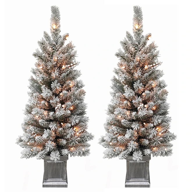 Holiday Living Set Illuminated And Flocked Christmas Tree 4-ft 3/pk