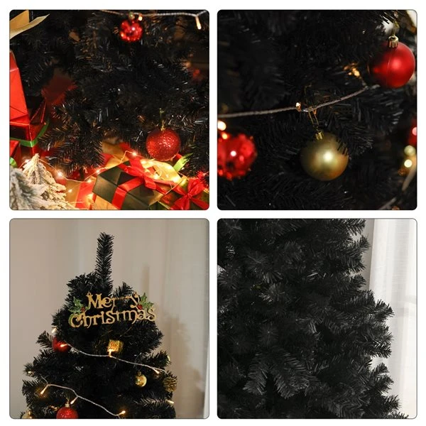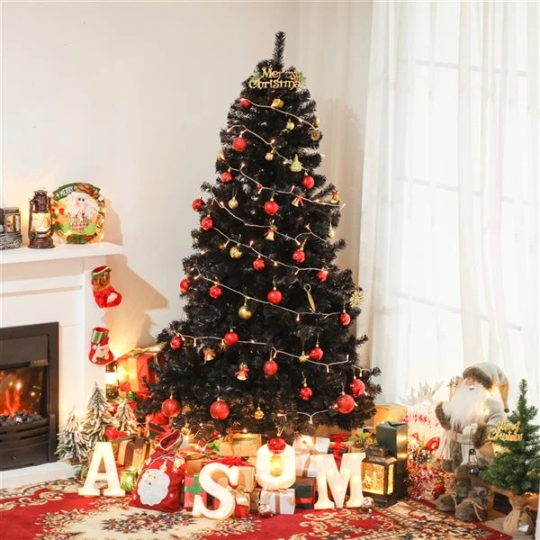 Bring nature home without the mess with this artificial Christmas tree from HOMCOM! The beautiful holiday black Christmas tree provides a great alternative to conventional trees with easy setup and little mess or maintenance required. Designed in a perfect tree shape, this hinged Christmas tree consists of full-bodied and realistic PVC tips. It’s sure to be a striking centrepiece for your family’s holiday decor this year and in years to come.