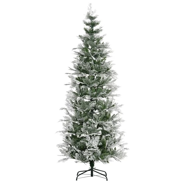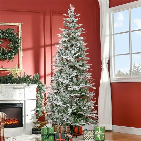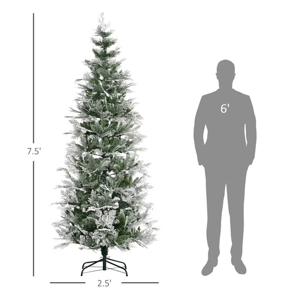 HOMCOM 7.5 Foot Snow Flocked Artificial Christmas Tree Holiday With Pencil Shape