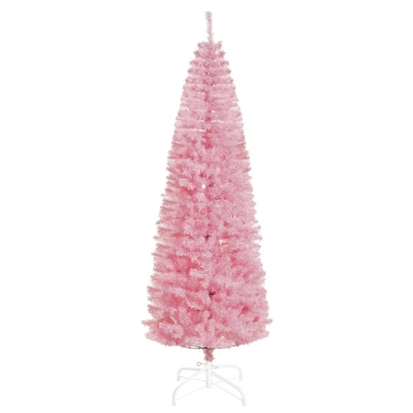HOMCOM 7-ft Artificial Christmas Tree Xmas Holiday Pencil Tree Home – Pink