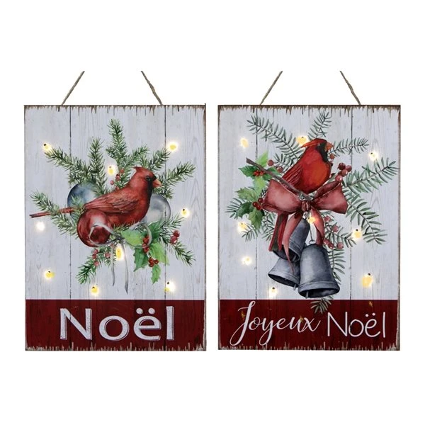 IH Casa Decor Assorted “Joyeux Noël” Cardinal MDF Christmas Wall Signs – Set Of 2