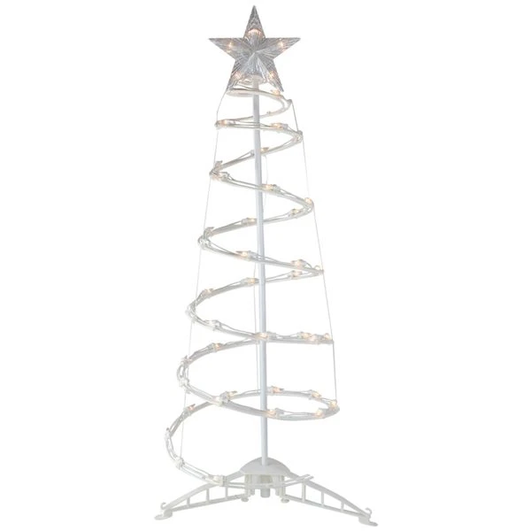 Create your own wonderland by effortlessly adding a soft glow with our spiral-shaped Christmas tree. A classic for holiday lawn decorating this tree is designed with clear lights that is UL listed for both indoor and outdoor use. Perfect for any area of your home or yard that needs a special holiday touch. The easy assembly allows for a quick and effortless setup and the included lawn stakes allow you to secure the tree into the ground.