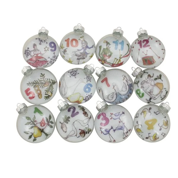 Northlight 3-in Clear ‘The Twelve Days Of Christmas’ Glass Disc Ornaments – 12-Piece