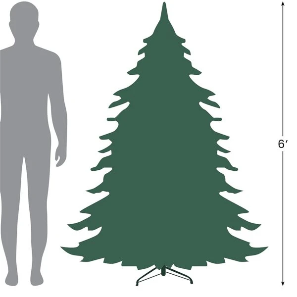 This beautiful tree features a mix of dark green and light green fir needles. The tapered tips create that realistic look without all of the hassle. This slim profile tree is a perfect space saver with all of the traditional beauty you expect your Christmas tree to have! This tree multicoloured lights will add shine and sparkle to your ornament collection. Product features: pre-lit with 150 multicolour LED lights. Bulb size: concave wide angle. It comes with a free green metal tree stand.