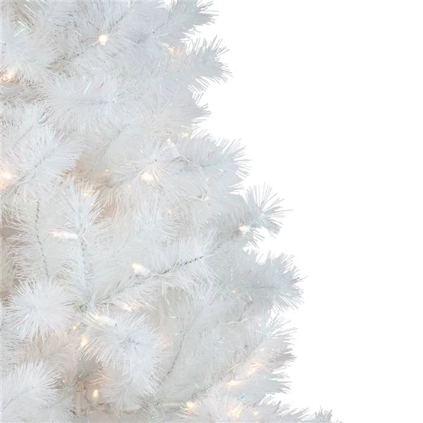 - Pre-lit white iridescent Alaskan pine artificial Christmas tree
