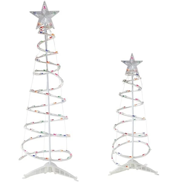 Northlight Set Of 2 Lighted Multicolour Outdoor Spiral Christmas Cone Trees – 4-ft And 6-ft