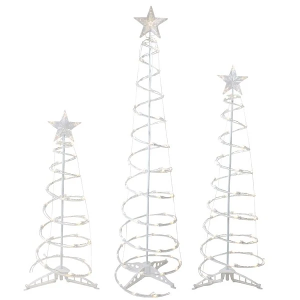 Northlight Set Of 3 Outdoor Spiral Christmas Trees With Warm White LED Lights- 3-ft – 4-ft – 6-ft