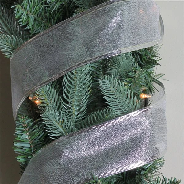 - Shimmering silver wired Christmas craft ribbon