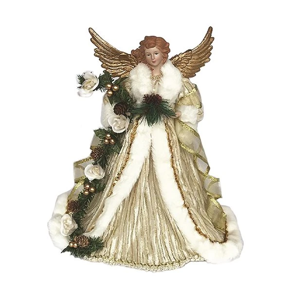 After the lights are strung and the ornaments and tinsel are hung, there’s one final step to make a Christmas tree perfect: placing a beautiful decoration on the very top. This exquisitely ornate and wonderfully detailed angel tree topper is a perfect complement to any tree. Dressed in a faux fur and gold trimmed glittery gown, supported by golden wings and holding a rope of pine cone garland, this angel is a classic celebration of the holiday season. Decorate for the holidays in style with this elegantly handcrafted 15-in Gold Angel Tree Topper that is sure to provide many seasons of happiness.