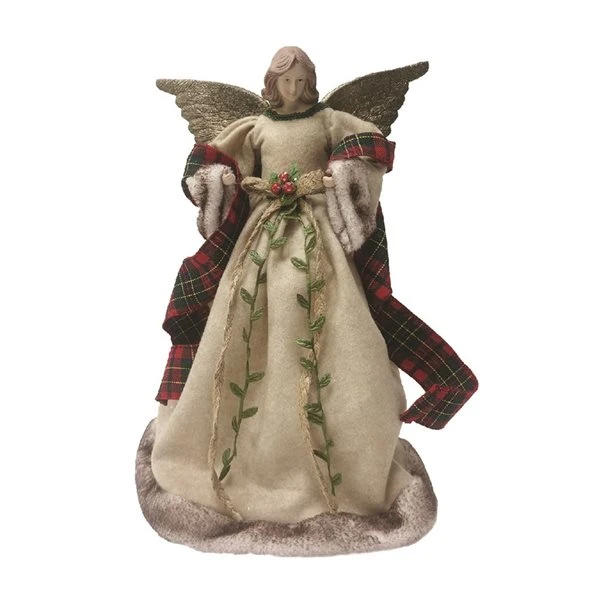 After the lights are strung and the ornaments and tinsel are hung, there’s one final step to make a Christmas tree perfect: placing a beautiful decoration on the very top. This wonderfully detailed angel tree topper is a perfect complement to any tree. Dressed in a faux fur trimmed rough spun gown, supported by golden wings and wearing a red plaid wrap, this angel is a natural celebration of the holiday season. Decorate for the holidays in style with this elegantly handcrafted 16-in Country Angel Tree Topper that is sure to provide many seasons of happiness.