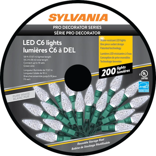 These pure white Sylvania lights, 200 count, will create the perfect lighting base for your Christmas tree. LED lighting does not produce heat, they are therefore safe to use in artificial and natural trees alike. They will last you year after year as they are EnergyStar certified.