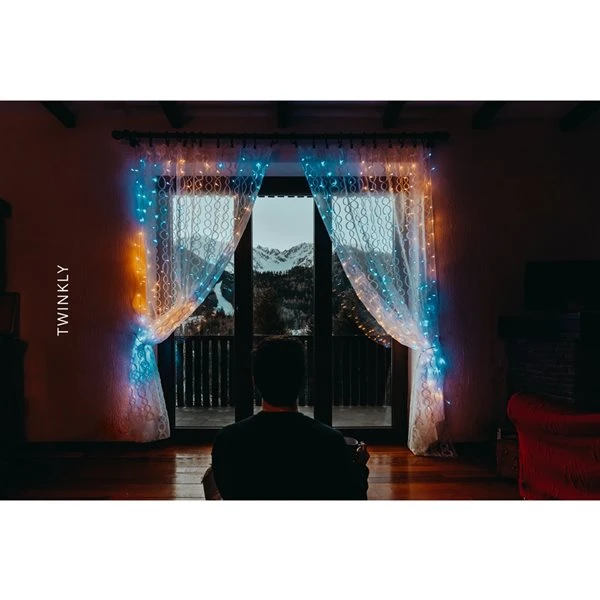 - App-controlled 210 multicoloured LED and Warm White curtain lights string