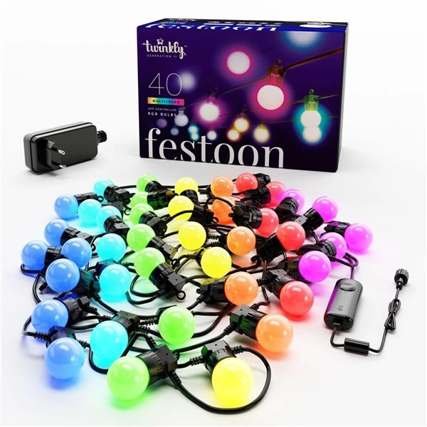 Twinkly Festoon is a smart LED bulb lights string that can be controlled via app and vocal assistants. With a lighted length of 66 feet, consisting of 40 G45 shaped RGB LED bulbs, Twinkly Festoon is perfect both for summer and the Christmas season, bringing the most advanced technology to your outdoor lighting decoration. Like all Twinkly products, Festoon can be mapped and every single LED can be controlled individually, allowing you to create and reproduce unique effects, gradients, and colour animations – Festoon becomes your screen. Easily configurable via Wi-Fi and Bluetooth®, Twinkly Festoon is controlled using the free Twinkly App, available for iOS and Android. Twinkly’s App enables you to create bespoke light design installations thanks to a wide range of pre-made effects and animations, as well as the ability to create your own effects from scratch using the FX Wizard creation tool.